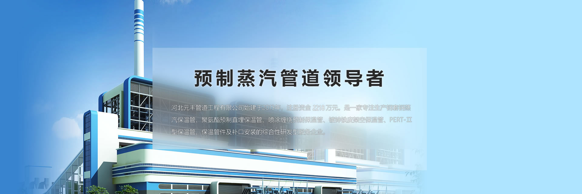 河北元豐管道工程有限公司始建于2013年,注冊(cè)資金2218萬(wàn)元。是一家專注生產(chǎn)鋼套鋼蒸汽保溫管、聚氨酯預(yù)制直埋保溫管、噴涂纏繞預(yù)制保溫管、鍍鋅鐵皮架空保溫管、PERT-Ⅱ型保溫管、保溫管件及補(bǔ)口安裝的綜合性研發(fā)型服務(wù)企業(yè)。